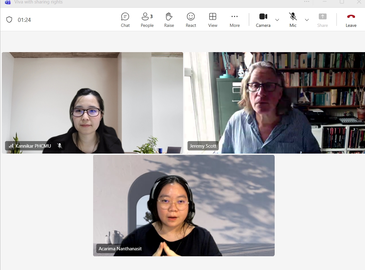 รองศาสตราจารย์ ดร.กรรณิการ์ อินต๊ะวงศ์ ได้รับเชิญเป็น External Examiner ในการสอบวิทยานิพนธ์ระดับปริญญาเอก หลักสูตร PhD in Digital Arts, School of Computing, University of Kent ประเทศสหราชอาณาจักร โดยวิทยานิพนธ์หัวข้อ “Design and Deployment of Social Media Interventions for Community-Based Rehabilitation in Rural and Low-Resource Settings” ซึ่งมุ่งศึกษาแนวทางการใช้สื่อสังคมออนไลน์เพื่อสนับสนุนการฟื้นฟูสมรรถภาพในชุมชน โดยเฉพาะในพื้นที่ชนบทและพื้นที่ที่มีทรัพยากรจำกัด
