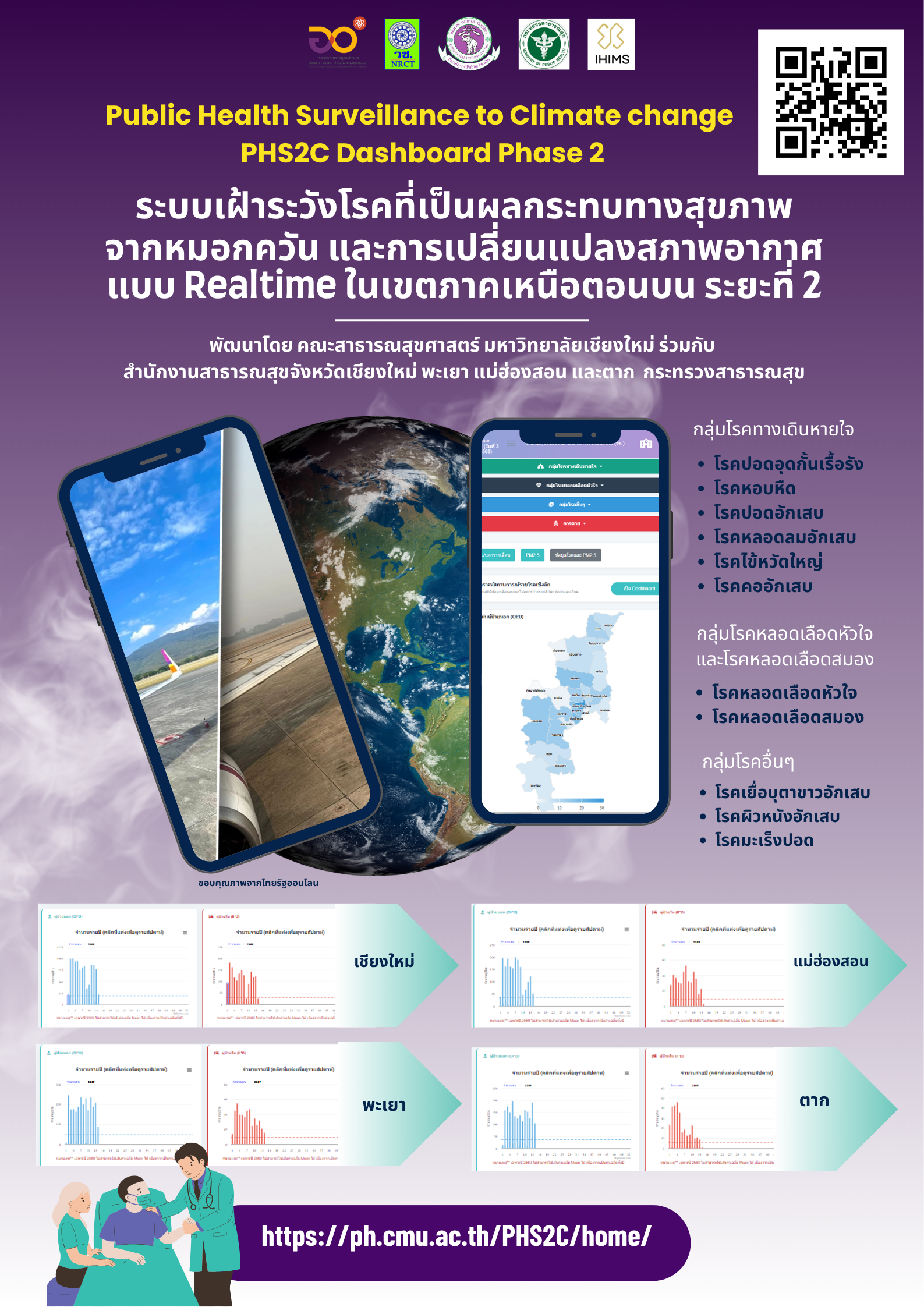 คณะสาธารณสุขศาสตร์ มช. เปิดตัวระบบเฝ้าระวังโรคจากฝุ่น PM2.5 และสภาพอากาศ ครอบคลุม 4 จังหวัดภาคเหนือ ใช้งานจริง 3 เม.ย. 2569 คณะสาธารณสุขศาสตร์ มหาวิทยาลัยเชียงใหม่ นำโดย ศาสตราจารย์เกียรติคุณ ดร.นพ.สุวัฒน์ จริยาเลิศศักดิ์ หัวหน้าโครงการวิจัย “ระบบเฝ้าระวังโรคและผลกระทบทางสุขภาพระดับจังหวัดในเขตภาคเหนือตอนบน แบบเป็นปัจจุบัน ระยะที่ 2” เปิดเผยความก้าวหน้าการพัฒนาระบบเฝ้าระวังโรคแบบ Realtime เพื่อรองรับปัญหาหมอกควันและการเปลี่ยนแปลงสภาพอากาศ โดยได้รับทุนสนับสนุนต่อเนื่องจาก สำนักงานการวิจัยแห่งชาติ (วช.) โครงการระยะที่ 1 เริ่มต้นในจังหวัดเชียงใหม่ ได้พัฒนาด้านการบริหารจัดการข้อมูลขนาดใหญ่ และสร้าง Dashboard แสดงสถานการณ์ผู้ป่วยโรคที่ได้รับผลกระทบจากมลภาวะทางอากาศแบบรายสัปดาห์ ย้อนหลัง 5 ปี และต่อเนื่องถึงปัจจุบัน ซึ่งถูกนำไปใช้จริงโดยหน่วยงานสาธารณสุขตั้งแต่ต้นปี 2567 สำหรับ ระยะที่ 2 ได้ขยายผลสู่พื้นที่ พะเยา แม่ฮ่องสอน และตาก ครอบคลุมโรคระบบทางเดินหายใจ (COPD, ปอดอักเสบ, หอบหืด, หลอดลมอักเสบ, ไข้หวัดใหญ่) รวมถึงโรคหลอดเลือดสมอง โดยพบว่ากลุ่มโรค COPD และโรคหลอดเลือดสมองเป็นโรคที่มีจำนวนผู้ป่วยสูงที่สุด โดยเฉพาะช่วงฝุ่น PM2.5 พุ่งสูงในเดือนกุมภาพันธ์–พฤษภาคม ระบบดังกล่าวช่วยให้ทุกจังหวัดสามารถติดตามจำนวนผู้ป่วยแบบเรียลไทม์ ใช้ประกอบการแจ้งเตือนประชาชนในช่วงค่าฝุ่นสูง รวมถึงช่วยวางแผนเรื่องอัตราครองเตียง บุคลากรทางการแพทย์ และเวชภัณฑ์ล่วงหน้าได้อย่างมีประสิทธิภาพ พร้อมประเมินประสิทธิผลมาตรการรับมือหมอกควันในพื้นที่ ระบบ Dashboard พร้อมเปิดใช้งานอย่างเป็นทางการตั้งแต่ 3 เมษายน 2569 เป็นต้นไป เข้าใช้งานได้ที่: https://ph.cmu.ac.th/PHS2C/home/