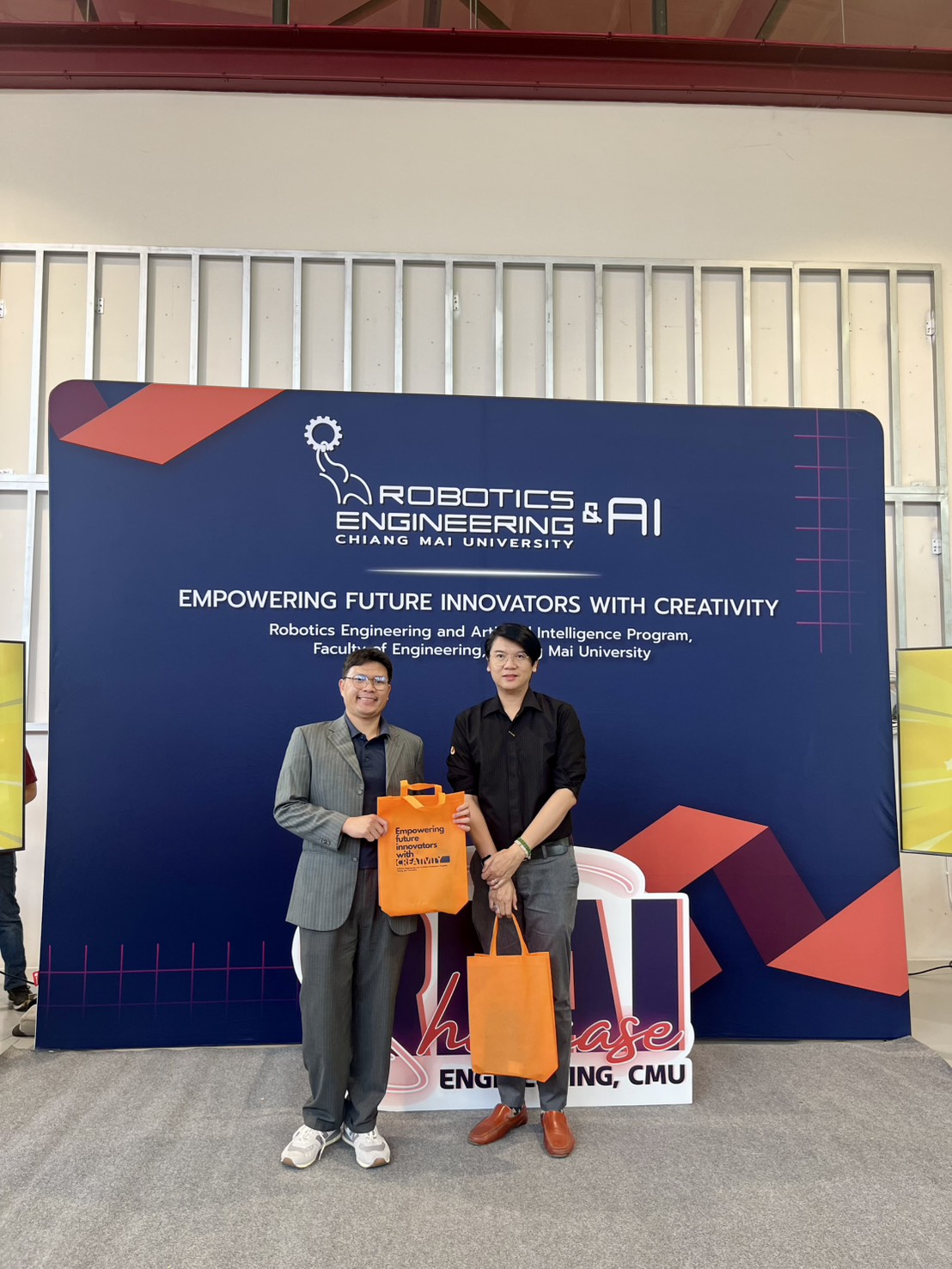 เมื่อวันที่ 6 มีนาคม 2569 เวลา 14.30 น. ผู้ช่วยศาสตราจารย์ ดร.ณปภัช โพธิ์พรหม และ อ.ดร.อลงกรณ์ ศรีเลิศ อาจารย์ประจำคณะสาธารณสุขศาสตร์ ได้รับเชิญร่วมเป็นเกียรติในพิธีเปิด เยี่ยมชมผลงานนักศึกษา และให้ข้อเสนอแนะ เพื่อเป็นประโยชน์ต่อการพัฒนาผลงานและการเตรียมความพร้อมก่อนสำเร็จการศึกษาของนักศึกษาคณะวิศวะกรรมศาสตร์ สาขาวิศวกรรมหุ่นยนต์และปัญหาประดิษฐ์ ณ คณะวิศวกรรมศาสตร์ มหาวิทยาลัยเชียงใหม่