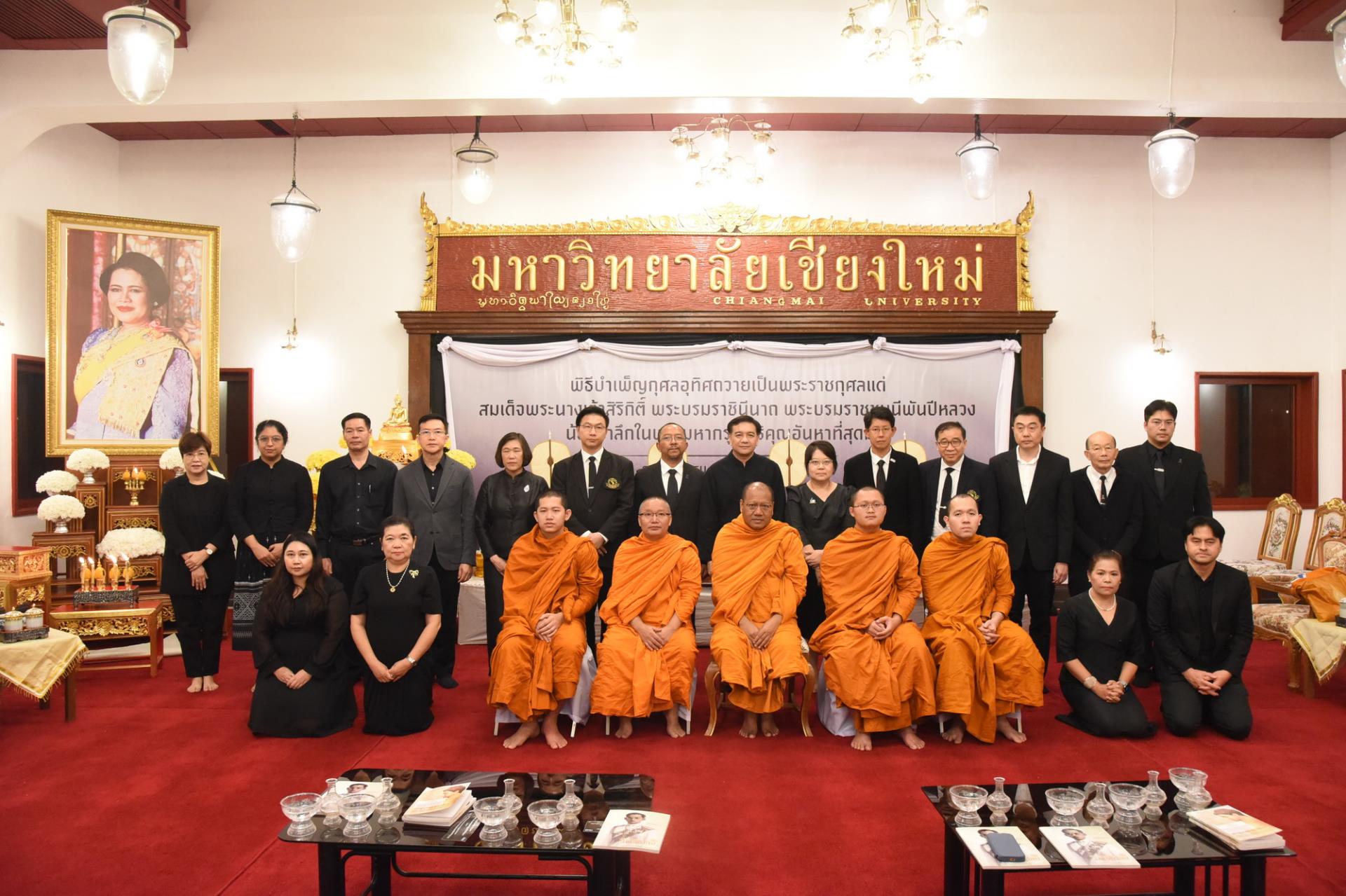 รศ.ดร.วราภรณ์ บุญเชียง คณบดี พร้อมด้วยผู้บริหาร คณาจารย์ และบุคลากร คณะสาธารณสุขศาสตร์ ร่วมพิธีบำเพ็ญกุศลอุทิศถวายเป็นพระราชกุศลแด่ สมเด็จพระนางเจ้าสิริกิติ์ พระบรมราชินีนาถ พระบรมราชชนนีพันปีหลวง โดยเป็นเจ้าภาพร่วมกับกลุ่มสาขาวิทยาศาสตร์สุขภาพ และสำนักงานมหาวิทยาลัยเชียงใหม่ ในวันที่ 21 กุมภาพันธ์ 2569 ณ ศาลาธรรม มหาวิทยาลัยเชียงใหม่ เครดิตภาพ : ศูนย์สื่อสารองค์กรและนักศึกษาเก่าสัมพันธ์
