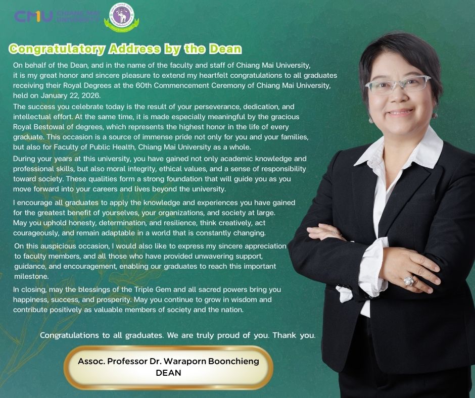 สารจากคณบดีมอบให้กับบัณฑิตคณะสาธารณสุขศาสตร์ มหาวิทยาลัยเชียงใหม่