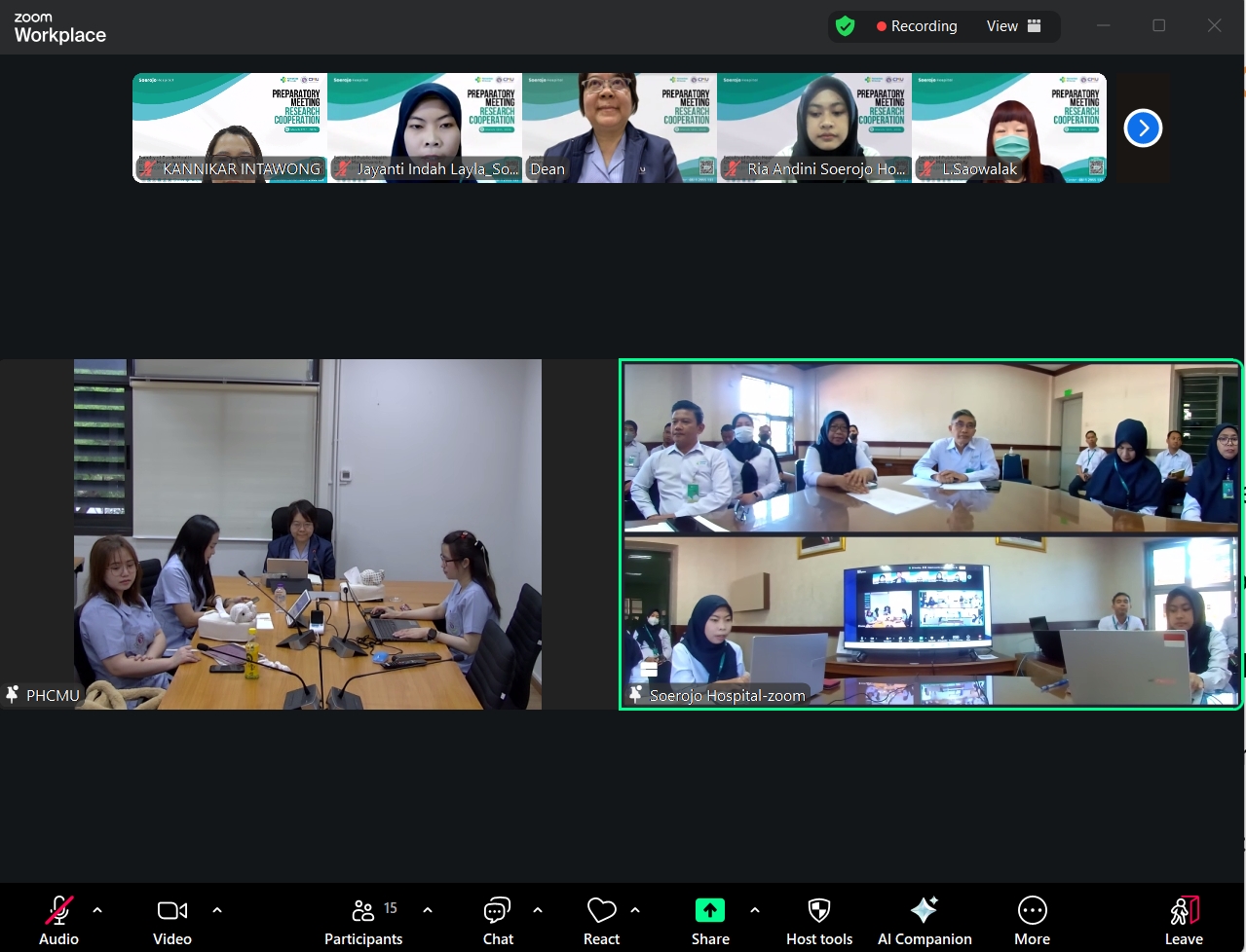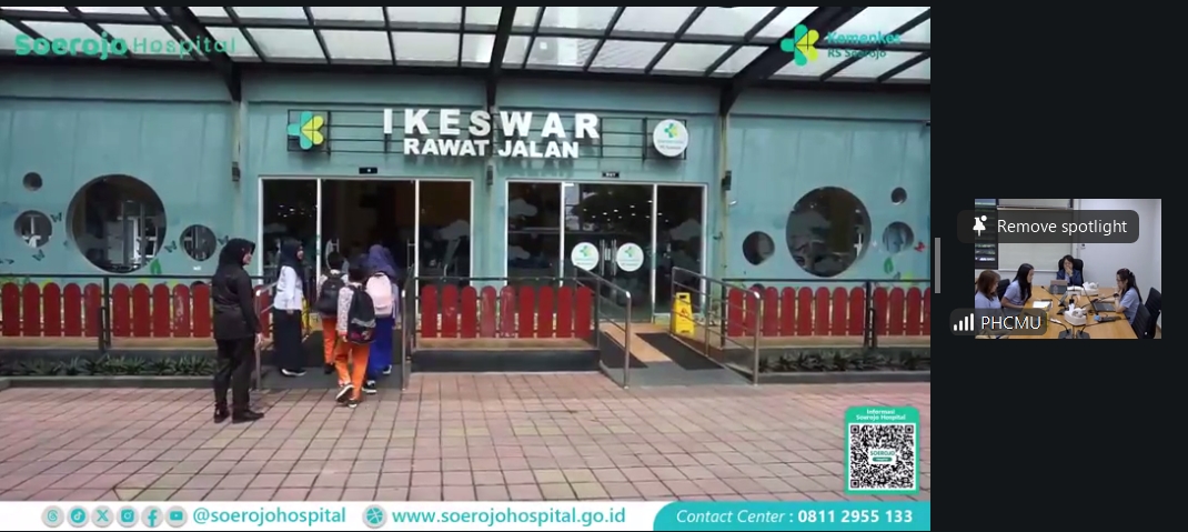รศ.ดร. วราภรณ์ บุญเชียง คณบดีคณะสาธารณสุขศาสตร์, ผู้ช่วยศาสตราจารย์ ดร.อักษรา ทองประชุม หัวหน้าสำนักวิชาฯ และคณจารย์ ได้ประชุมเพื่อทำการปรึกษาหารือ เกี่ยวกับการทำความร่วมมือด้านการวิจัยและการบริการวิชาการ กับ Soerojo Hospital โดยมี Dr. Rukmono Siswishanto, President Director, Dr.Ratna Dewi Pangestuti, Nursing Director และผู้บริหารโรงพยาบาลร่วมประชุม