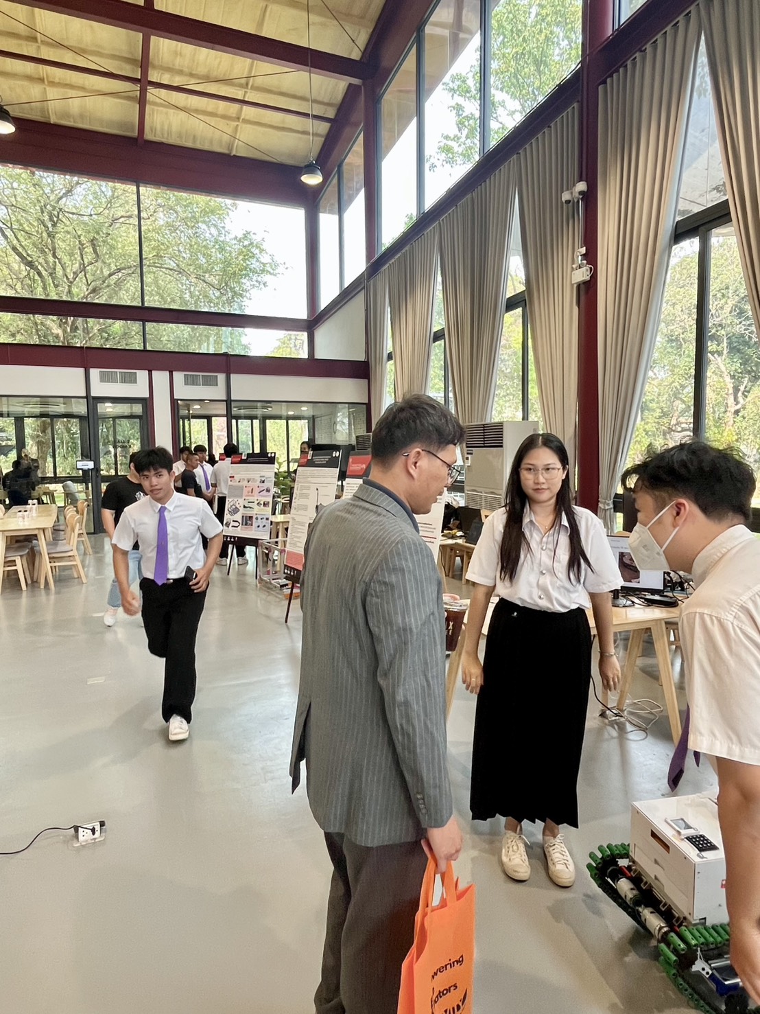เมื่อวันที่ 6 มีนาคม 2569 เวลา 14.30 น. ผู้ช่วยศาสตราจารย์ ดร.ณปภัช โพธิ์พรหม และ อ.ดร.อลงกรณ์ ศรีเลิศ อาจารย์ประจำคณะสาธารณสุขศาสตร์ ได้รับเชิญร่วมเป็นเกียรติในพิธีเปิด เยี่ยมชมผลงานนักศึกษา และให้ข้อเสนอแนะ เพื่อเป็นประโยชน์ต่อการพัฒนาผลงานและการเตรียมความพร้อมก่อนสำเร็จการศึกษาของนักศึกษาคณะวิศวะกรรมศาสตร์ สาขาวิศวกรรมหุ่นยนต์และปัญหาประดิษฐ์ ณ คณะวิศวกรรมศาสตร์ มหาวิทยาลัยเชียงใหม่