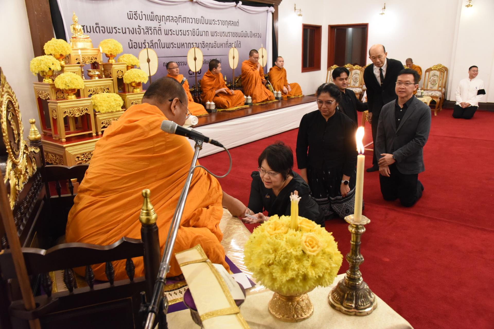 รศ.ดร.วราภรณ์ บุญเชียง คณบดี พร้อมด้วยผู้บริหาร คณาจารย์ และบุคลากร คณะสาธารณสุขศาสตร์ ร่วมพิธีบำเพ็ญกุศลอุทิศถวายเป็นพระราชกุศลแด่ สมเด็จพระนางเจ้าสิริกิติ์ พระบรมราชินีนาถ พระบรมราชชนนีพันปีหลวง โดยเป็นเจ้าภาพร่วมกับกลุ่มสาขาวิทยาศาสตร์สุขภาพ และสำนักงานมหาวิทยาลัยเชียงใหม่ ในวันที่ 21 กุมภาพันธ์ 2569 ณ ศาลาธรรม มหาวิทยาลัยเชียงใหม่ เครดิตภาพ : ศูนย์สื่อสารองค์กรและนักศึกษาเก่าสัมพันธ์