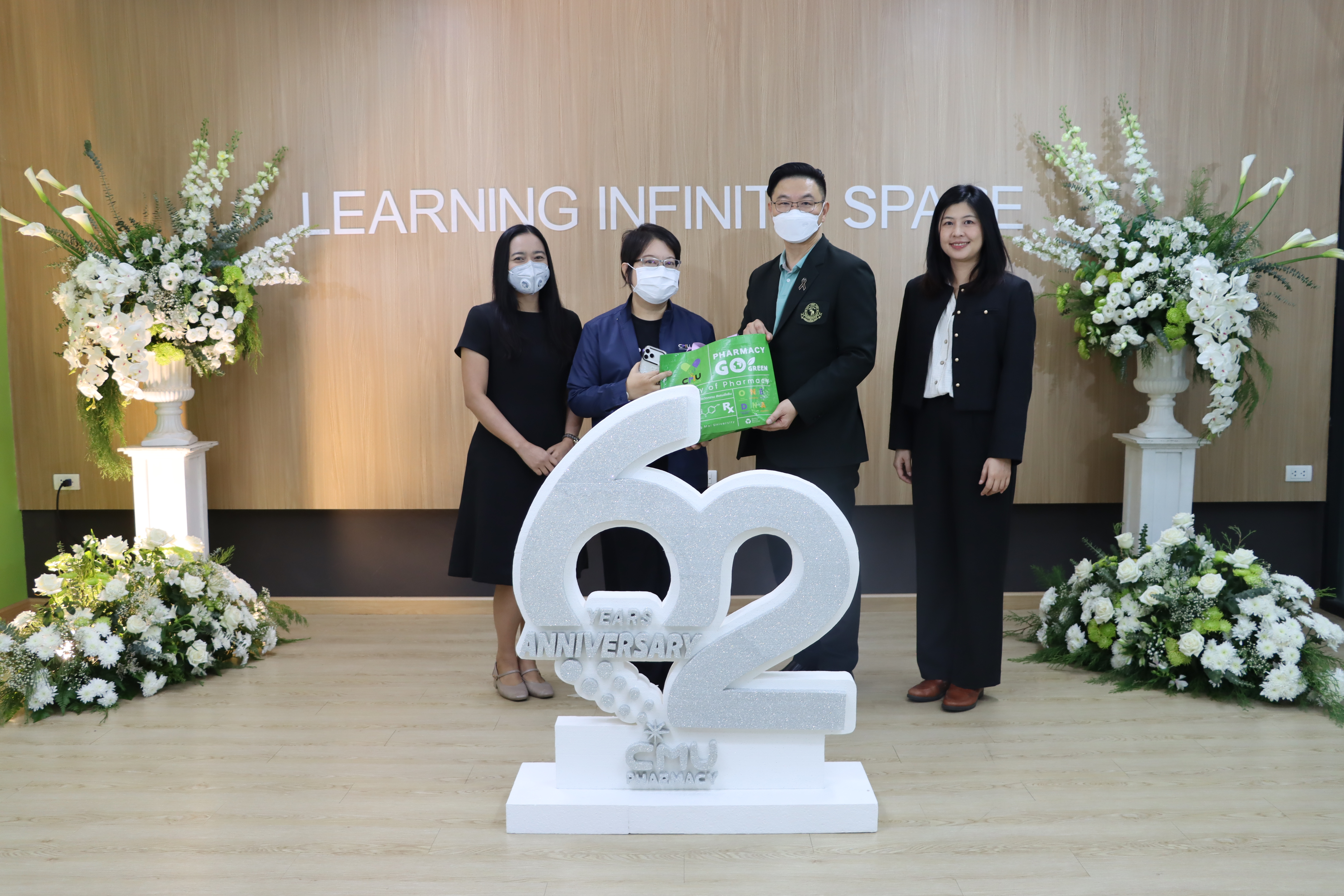 รองศาสตราจารย์ ดร.วราภรณ์ บุญเชียง คณบดีคณะสาธารณสุขศาสตร์ พร้อมด้วย ผู้ช่วยศาสตราจารย์ ดร.วรางคณา นาคเสน รองคณบดีและผู้ช่วยศาสตราจารย์ ดร.อักษรา ทองประชุม หัวหน้าสำนักวิชา เข้าร่วมพิธีทำบุญเนื่องในวันคล้ายวันสถาปนาคณะเภสัชศาสตร์ ประจำปี 2569 (ครบรอบ 62 ปี) ซึ่งจัดขึ้นในวันอังคารที่ 31 มีนาคม 2569 ณ ห้องกระถินณรงค์ อาคาร 6 คณะเภสัชศาสตร์ มหาวิทยาลัยเชียงใหม่ การจัดงานในครั้งนี้มีวัตถุประสงค์เพื่อความเป็นสิริมงคลแก่คณะฯ ผู้บริหาร คณาจารย์ บุคลากร นักศึกษา และผู้เกี่ยวข้อง ตลอดจนเพื่อสืบสานขนบธรรมเนียมประเพณีอันดีงามของมหาวิทยาลัย ทั้งนี้ ภายในงานมีพิธีทำบุญและกิจกรรมอันเป็นมงคล โดยมีผู้บริหารจากหลายคณะเข้าร่วมแสดงความยินดีและร่วมเป็นเกียรติในโอกาสสำคัญดังกล่าว